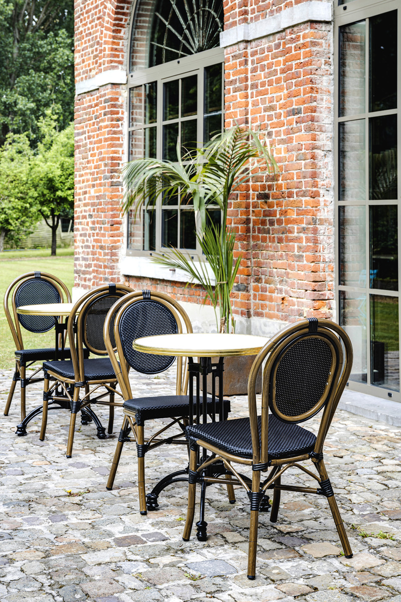 Empilable et légère, cette chaise permet un rangement et une manipulation faciles, idéales pour les terrasses et les salles à fort trafic.