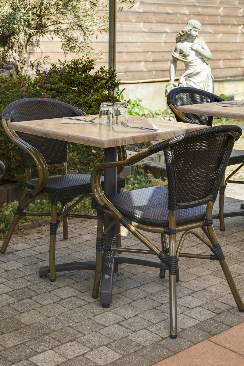 Apportez une touche d’élégance parisienne à votre terrasse avec ce fauteuil de restaurant au design bistrot intemporel. Alliant style, confort et résistance, il est spécialement conçu pour répondre aux exigences des professionnels de la restauration.