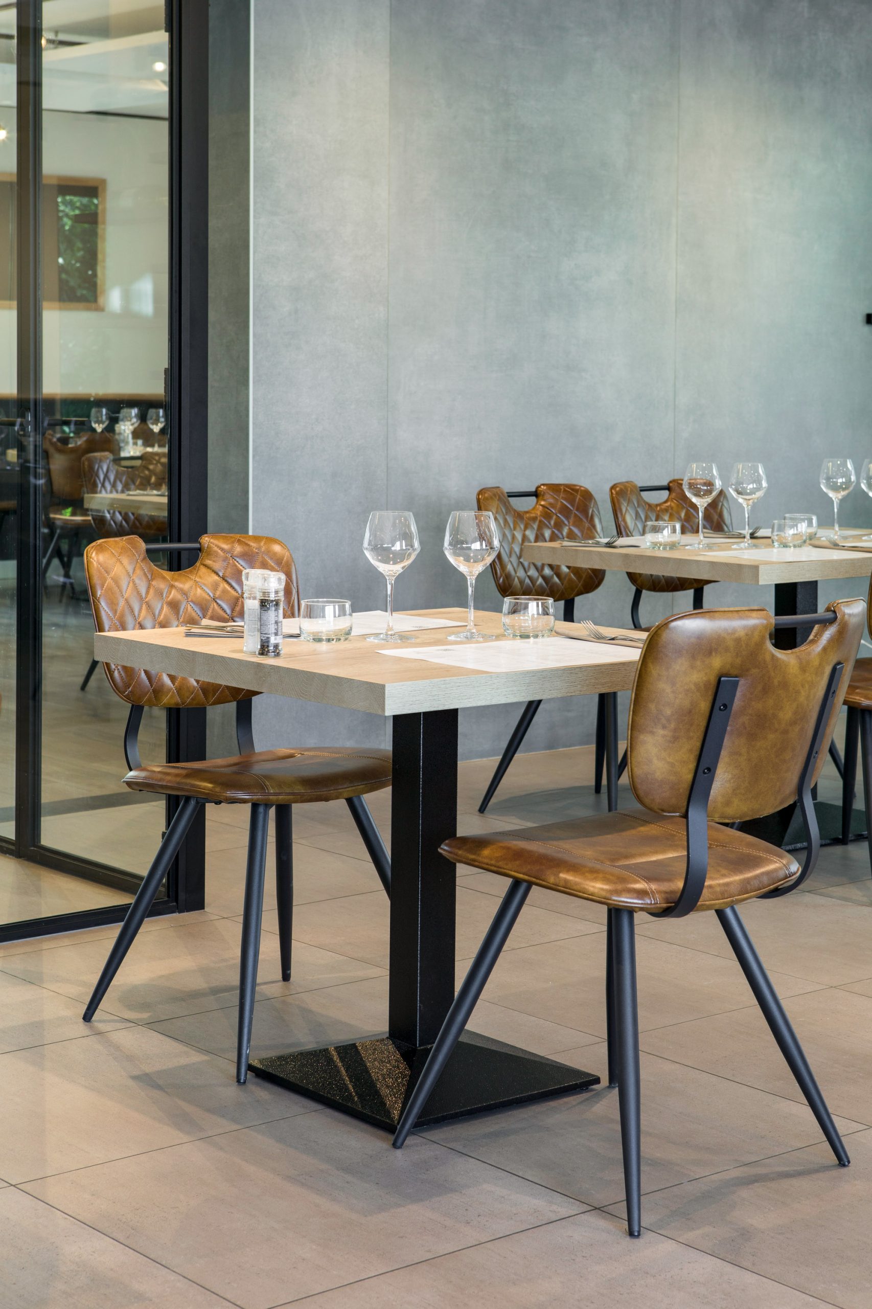 Pour assurer un confort total à vos clients, ce modèle est équipé de vérins de réglage discrets situés sous chaque extrémité de la base. Ces patins permettent de compenser instantanément les inégalités du sol, éliminant tout balancement indésirable et garantissant une surface de repas parfaitement plane.