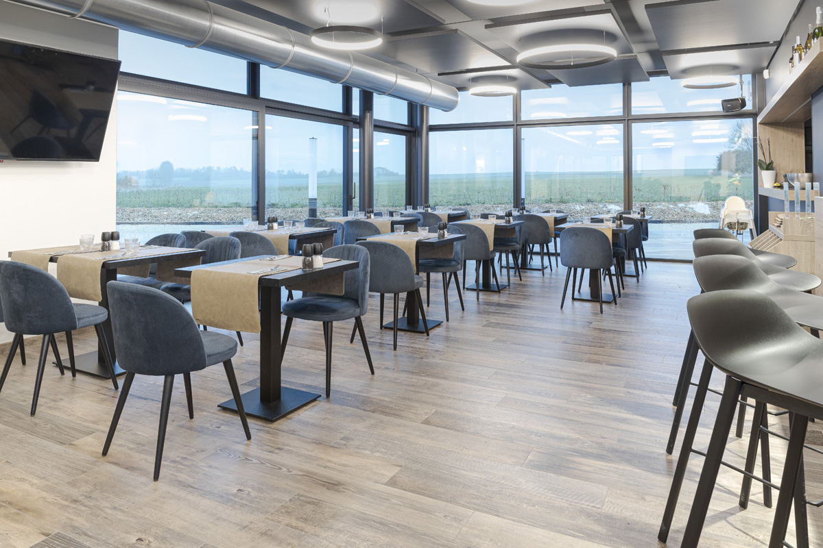 L’assise généreusement rembourrée garantit un confort optimal, même lors de repas prolongés ou de services continus.