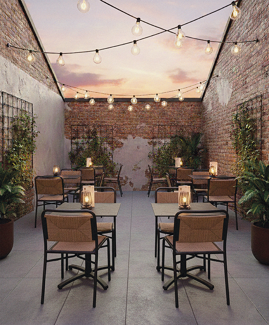 Sa structure en aluminium avec des tubes de 28 mm de diamètre et une épaisseur exceptionnelle de 1,8 mm en fait l'une des chaises les plus robustes de sa catégorie, capable de supporter un usage professionnel quotidien sans déformation. Le revêtement en peinture époxy noire offre un rendu sobre et moderne tout en protégeant le châssis contre les rayures, l'humidité et les rayons UV. Le tressage en PE (Polyéthylène) torsadé imite à la perfection la corde naturelle sans ses inconvénients. Il est imputrescible, résiste à la distension et se nettoie d'un simple coup d'éponge. Grâce à l'utilisation de l'aluminium, cette chaise reste facile à manipuler par vos équipes pour une mise en place ou un rangement rapide, tout en offrant une stabilité parfaite.